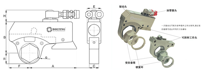 產品的選取依據螺栓鎖緊和拆松扭矩而定,扭矩值會因螺栓直徑和強度等級不同而有所變化。 |