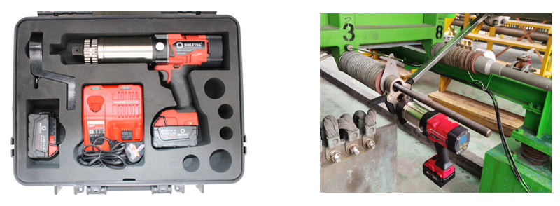 其次,同步預(yù)緊時應(yīng)使用同一廠家生產(chǎn)的相同型號鋰電扭矩扳手,這樣可以保證誤差最小,螺栓預(yù)緊力均勻分布。