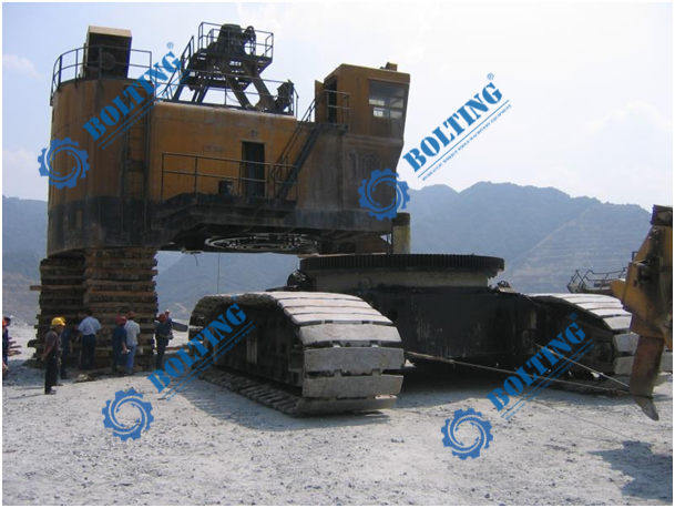 電鏟是千萬噸級露天礦山主要采掘設(shè)備之一,生產(chǎn)率高,作業(yè)率高,操作成本低,是目前采礦業(yè)公認(rèn)的機型。電鏟由行走裝置、回轉(zhuǎn)裝置、工作裝置、潤滑系統(tǒng)、供氣系統(tǒng)組成。鏟斗是電鏟的主要部件,它直接承受被挖掘礦石的作用力,因而磨損較大,斗桿也是電鏟挖掘過程中的主要部件之一,它的作用是連接和支持鏟斗,并將推壓作用傳送給鏟斗,鏟斗在推壓和提升力的共同作用下完成挖掘土壤的動作;其行走機構(gòu)中最為核心的履帶裝置,經(jīng)過相關(guān)的傳動機構(gòu)最終使其在地面直接移動!